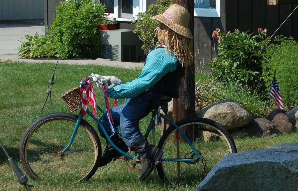 Or use a prop to hold up your scarecrow like a bike, chair or hay bale!